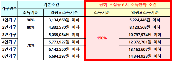 | 소득 150% 완화 대상 필독 | |